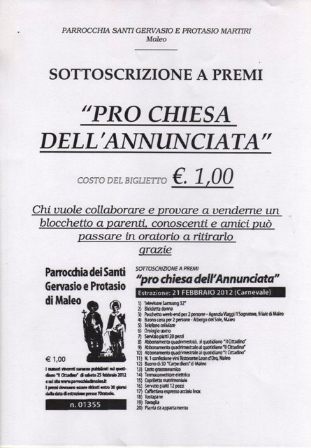 Chi vuole collaborare e provare a vendere un blocchetto a parenti, conoscenti ed amici, può passare in Oratorio a ritirarlo.