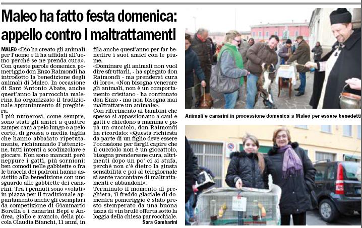 in occasione della festa di S. Antonio Abate, si terrà sul sagrato della chiesa parrocchiale la tradizionale benedizione degli animali. Cani, gatti, canarini, tartarughe, pesci... con cui tanti condividono la compagnia, proprio per l’aiuto che offrono all’uomo, potranno ricevere una particolare benedizione dal Signore per intercessione del Santo comunemente considerato il patrono degli animali.